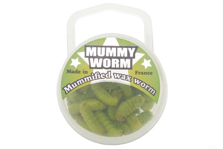 Eurotackle developed an exclusive, innovative method to preserve all the natural characteristics of the wax worms for up to 2 years. The Mummy Worm will stay soft, resistant, and will even keep its juice inside. This is a versatile, 4-season bait that adapts to any fishing techniques. This preserved live bait is amazing for Trout, Salmon, Crappie, Perch, Bass, Catfish, Sunfish, Bluegill & more fish species. It also excels for ice fishing when rigged on a Tungsten ice jig. The Mummy Worm will always be a safe bet that will show you to catch more fish. They come in a small live bait container that you can keep in your tackle box. No more need for live waxworms, mealworms, nightcrawlers, Spikes. Our preserved wax worms are all you need when it comes to fishing worms. 12 colors available. Mummified wax worm: 35-40 worms/container. For fishing only