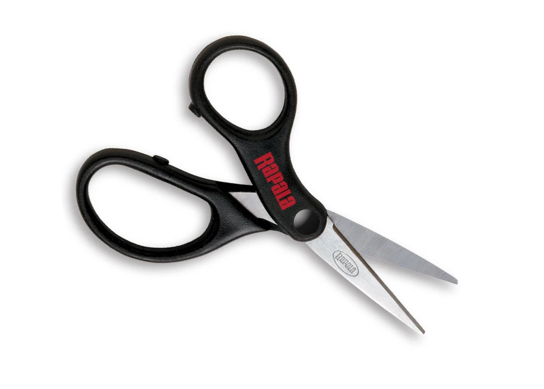 Designed with sharp serrated cutting edge and oversized finger and thumb holes, these scissors actually grip and hold braided line for easy non-slip cutting.