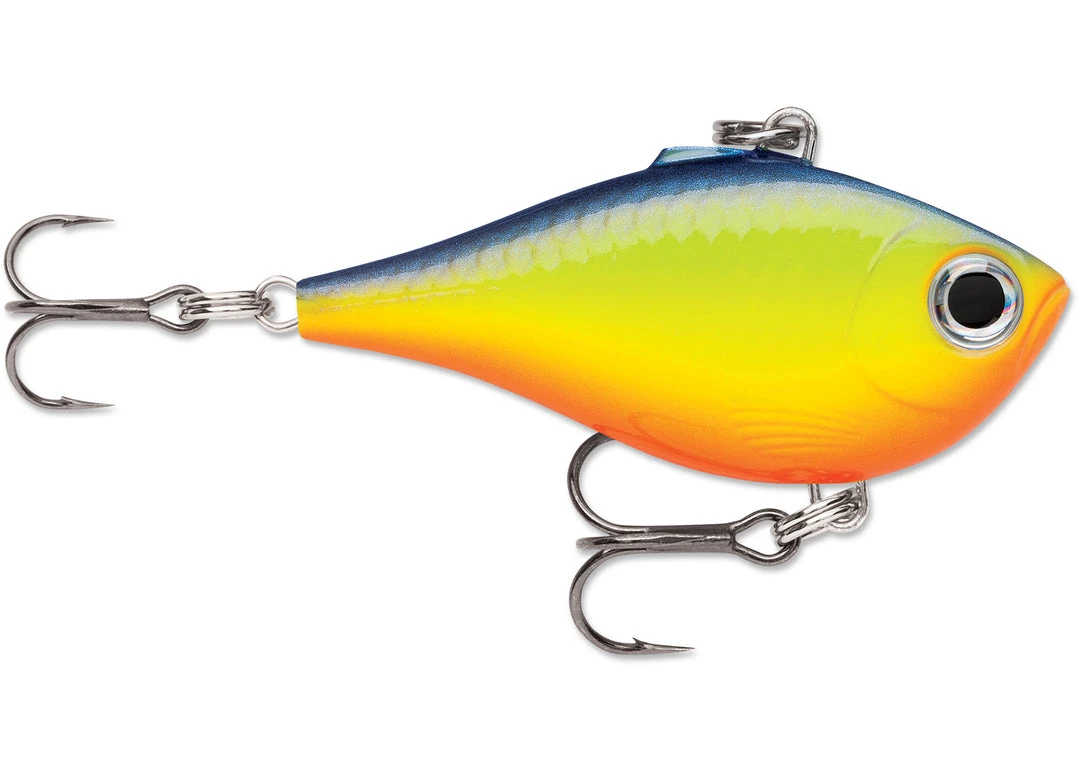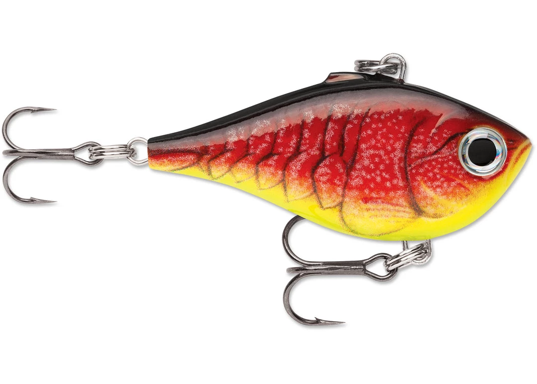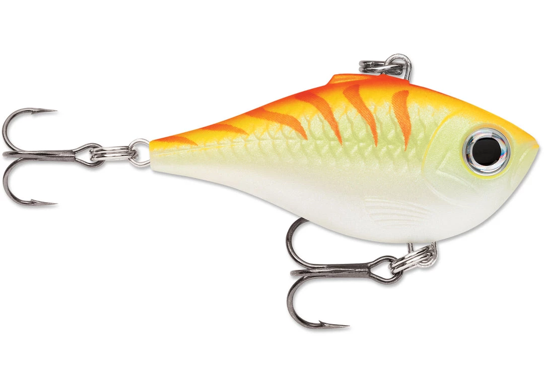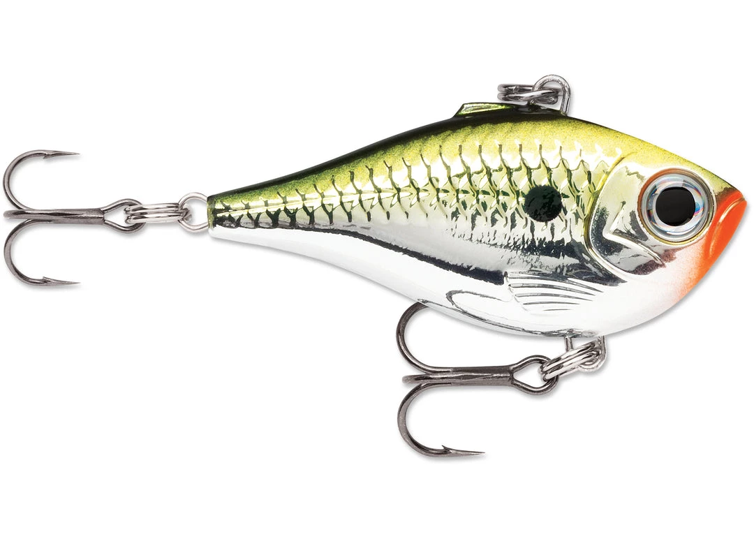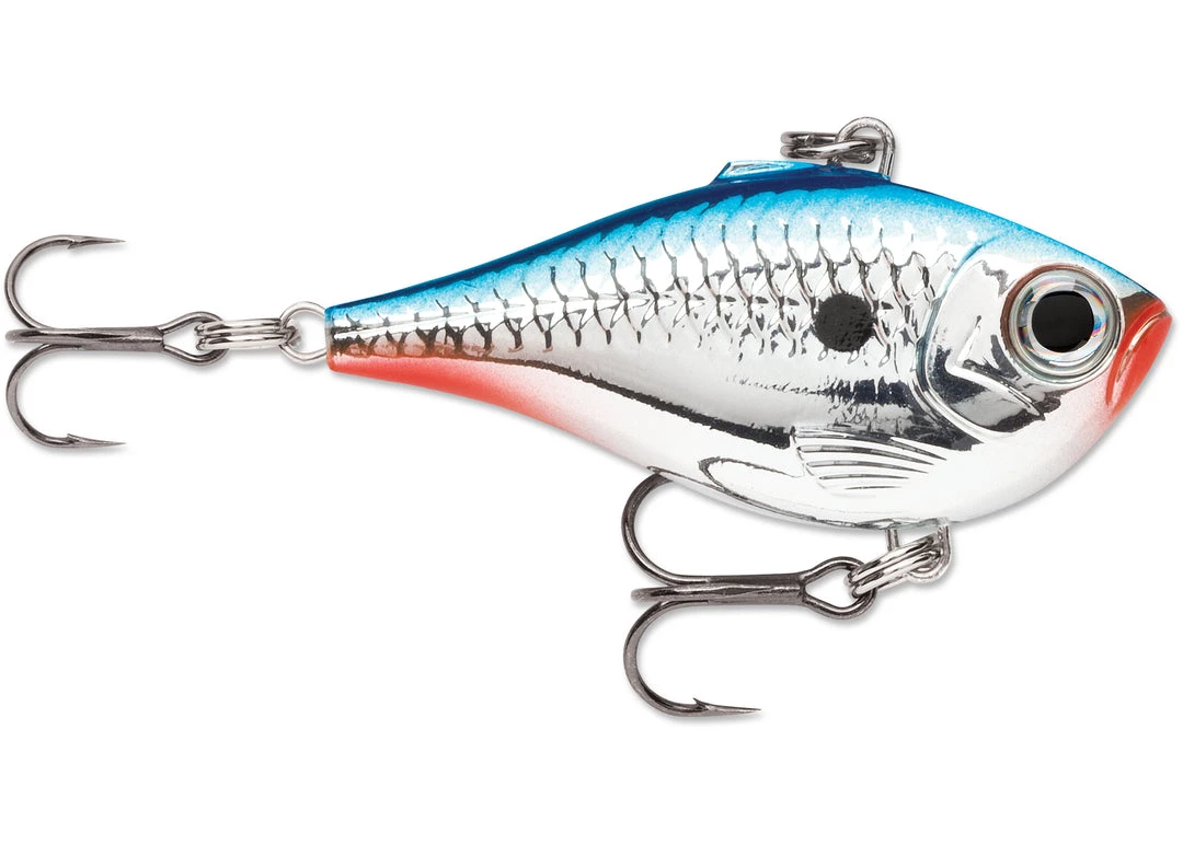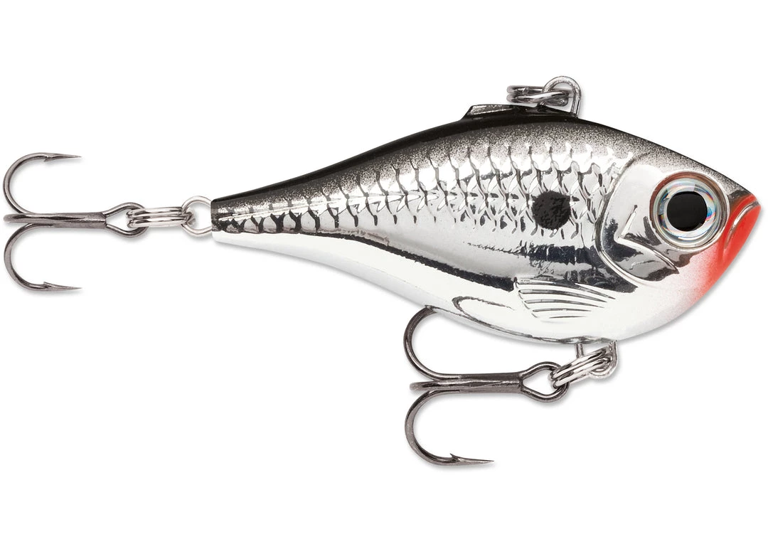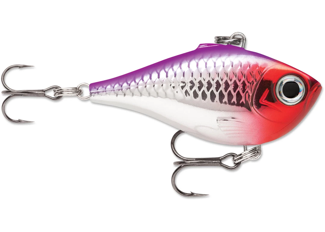 The Rippin’ Rap features a lipless, deep belly profile designed to crank, swim and rip. With its skinny sides this bait flutters on the drop. Hard vibrating action on fast or slow retrieves accented with loud, distinctive BB rattle system. Textured scales and gills with deep set 3D holographic eyes. Super easy to fish, the Rippin’ Rap® is perfect for pulling over or through grass, bouncing off timber and rippin’ through rocks. Long-casting with variable running depth, this one is just right for clear water where look is key or for fishing stained, dark water where just the right sound is essential. Fast piercing VMC® black nickel hooks seal the deal.