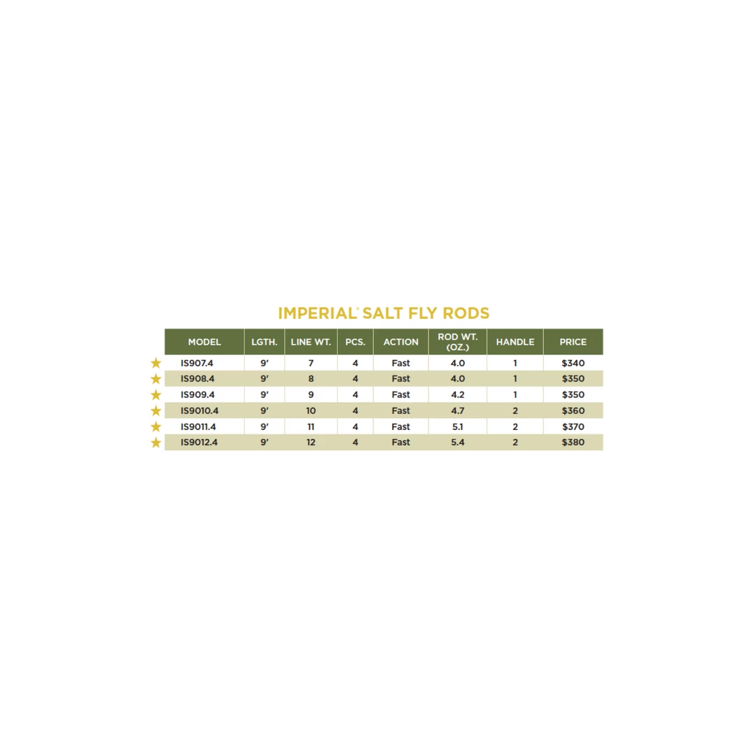 All-new for 2020, the Imperial® Salt combines SSCIII carbon with IPC mandrel technology creating fast action rods designed to conquer the toughest saltwater fishing environments. Saltwater worthy components and a stealthy appearance punctuate the series.