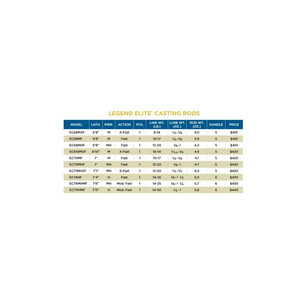 - LEGEND ELITE® CASTING RODS feature: