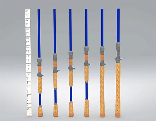 - Precision machined aluminum reel seat nuts and wind checks on spinning and casting models.