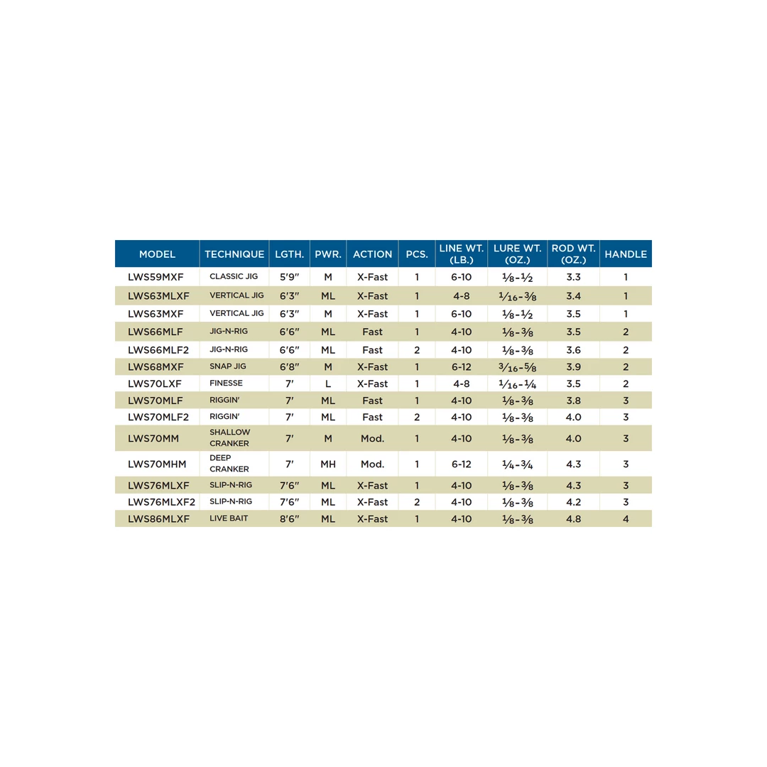 - LEGEND TOURNAMENT® WALLEYE SPINNING RODS feature: