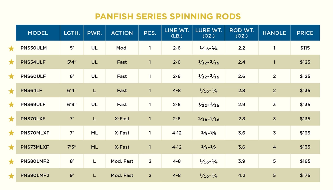 St. Croix’s panfish series is built upon heritage and angler feedback. Technique specific handles and stain resistant reel seats compliment rod models designed for improved balance and the increased sensitivity. Panfish series delivers a harmonious balance between power and action demanded by panfish anglers at an incredible value!