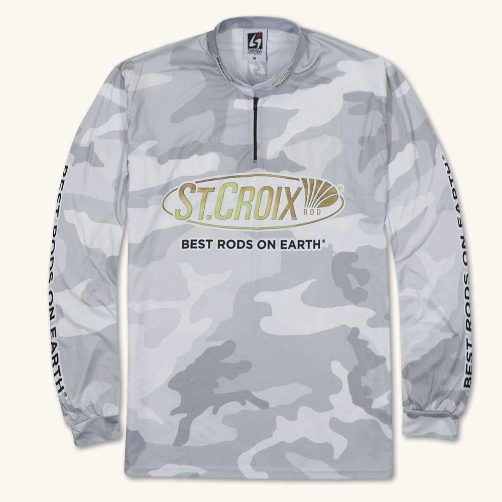 Performance Dye Subs are back and built for the die-hard St. Croix Rods anglers in all of us! This 100% polyester design create the ultimate performance in all conditions. Features the St. Croix Rods logo on the full front, left and right sleeves. Includes a 1/4 zip collar and is crafted with our go-to Camo Pattern!