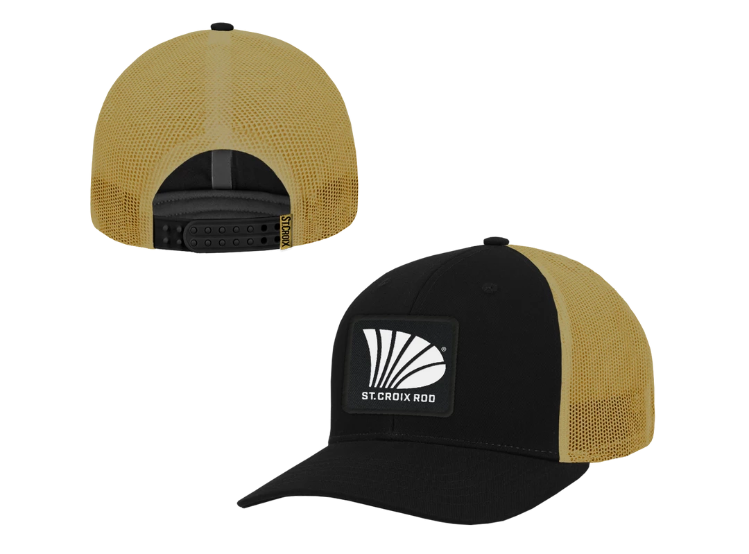 Black chino twill/mesh with an extra thick buckram structured front fit. Finished with a plastic double row snapback.