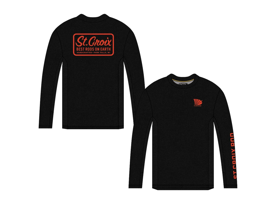 Stay protected with this black heather performance long sleeve! Made of 90% polyester 10% Spandex for all-day comfort! Technical features include s UPF 50+, Side Mesh Panels, Stain Resistant, Moisture Wicking and Anti-microbial performance fabric.