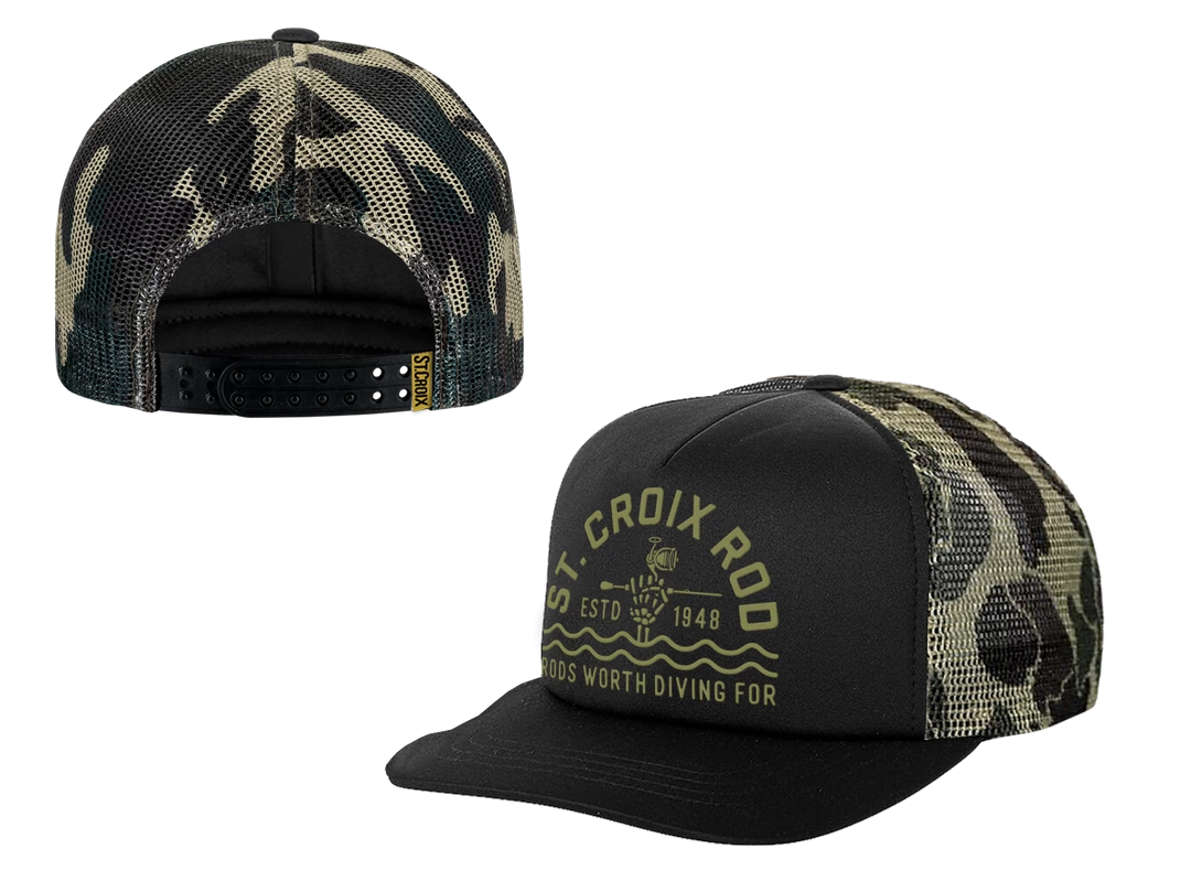Black poly twill/black mesh with a high profile foam structured front fit. Finished with a plastic double row snapback!
