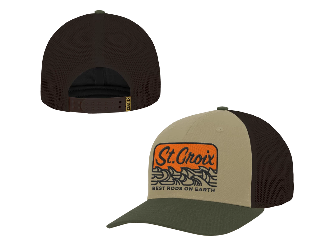 Tan chino twill/black mesh with an extra thick buckram structured front fit. Finished with a plastic double row snapback
